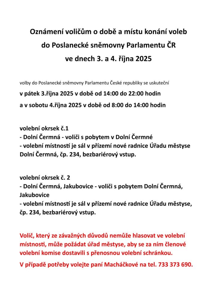 Oznámení voličům o době a místu konání voleb